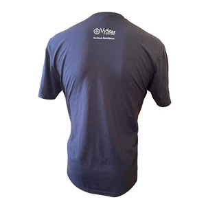 Port Authority Unisex Tri-Blend T-shirt in Deep Navy Blue with White Imprint on Front of Do Good Established Logo and VyStar Credit Union Logo on Back